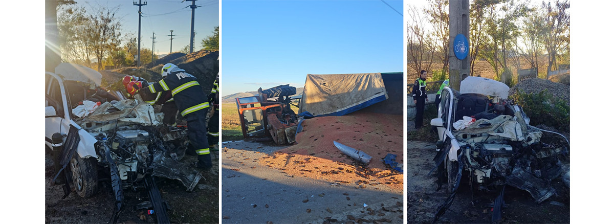 Un bărbat de 58 de ani și-a pierdut viața după ce autoturismul pe care îl conducea a intrat pe sensul opus și a lovit frontal un tractor agricol condus de un tânăr de 20 de ani. Pasagerul din dreapta-față a fost rănit în urma impactului.
