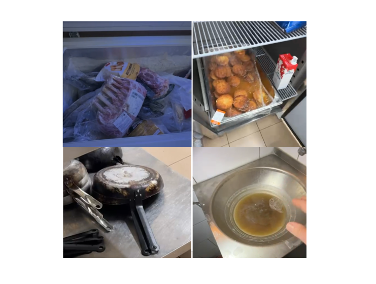 Inspectările au evidențiat utilizarea unor tigăi cu arsuri și uzură avansată, ustensile necorespunzătoare, cuțite cu nituri și coșuri de gunoi fără capac și pedală. Fluxul tehnologic nu a fost respectat, iar în spațiul de producție s-au găsit alimente cu data de consum expirată, fapt ce contravine normelor de siguranță alimentară.