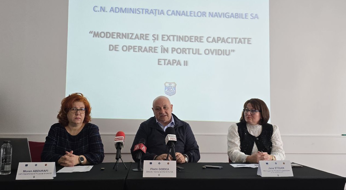 Proiectul „Modernizare și extindere capacitate de operare în Portul Ovidiu Etapa II“ vizează reabilitarea malului drept și construirea unui port nou pe malul stâng, pe o platformă de circa 25.000 mp, dotată cu toate facilitățile necesare. Anul viitor va fi lansată licitația pentru operatorul portuar de pe malul stâng.