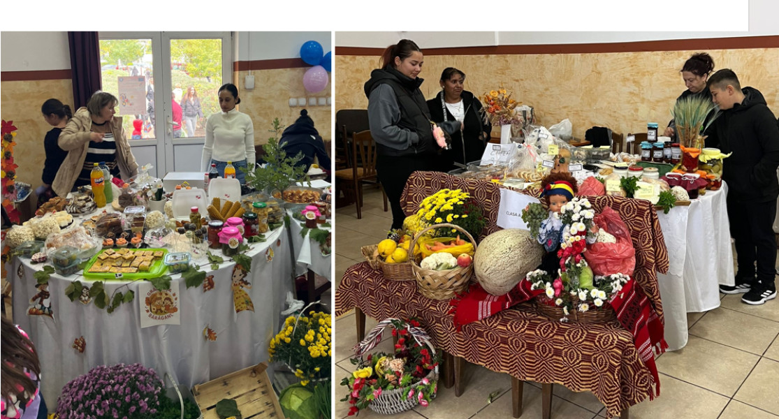 În Căminul Cultural Bărăganu, târgul de toamnă a adunat localnicii într-un spațiu primitor, decorat cu produse gătite de elevi și părinți. O gamă variată de dulciuri, compoturi și mâncăruri sărate, toate cu aromă autentică, a atras atât copiii, cât și adulții dornici să guste din bunătăți.