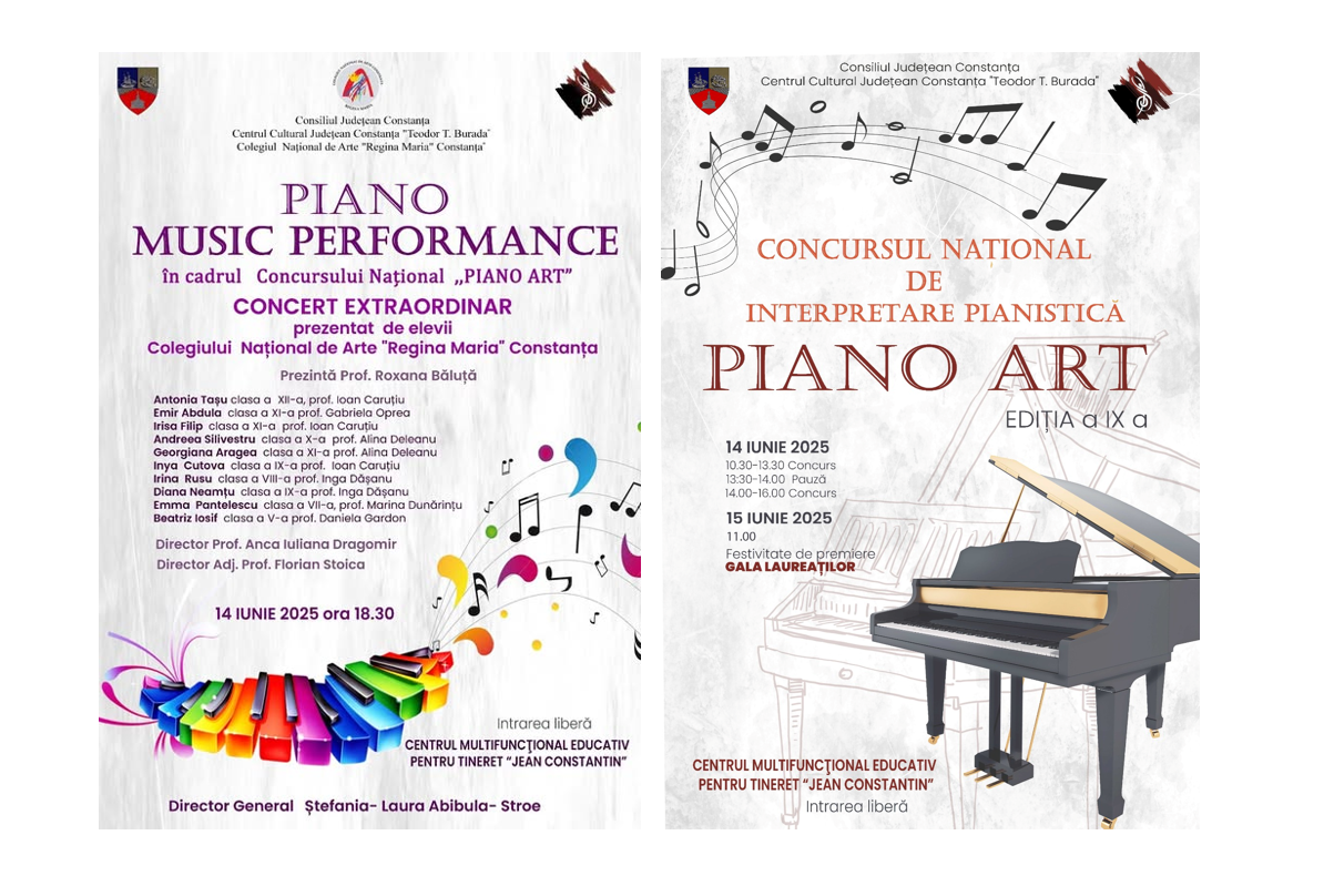 Centrul Cultural Județean Constanța „Teodor T. Burada”, cu sprijinul Consiliului Județean, organizează în perioada 14-15 iunie concursul de interpretare pianistică „Piano Art”. Evenimentul va avea loc în sala de concerte a Centrului Multifuncțional Educativ pentru Tineret „Jean Constantin” din Constanța.