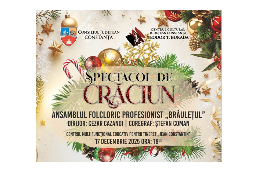 Casa de Cultură I.N. Roman din Medgidia găzduiește evenimentul „Pe aripile muzicii, vin colindătorii” începând cu ora 11.00.