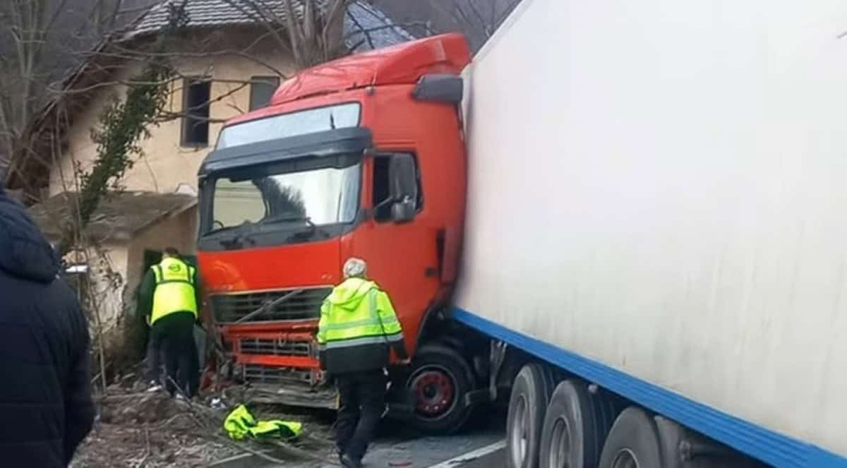 Conform IPJ Gorj, TIR-ul a rămas blocat pe diagonala drumului după ce a lovit zidurile unei case situate pe marginea DN66, în apropierea Mănăstirii Lainici. Impactul nu a provocat rănirea persoanelor, iar pagubele au fost doar materiale.