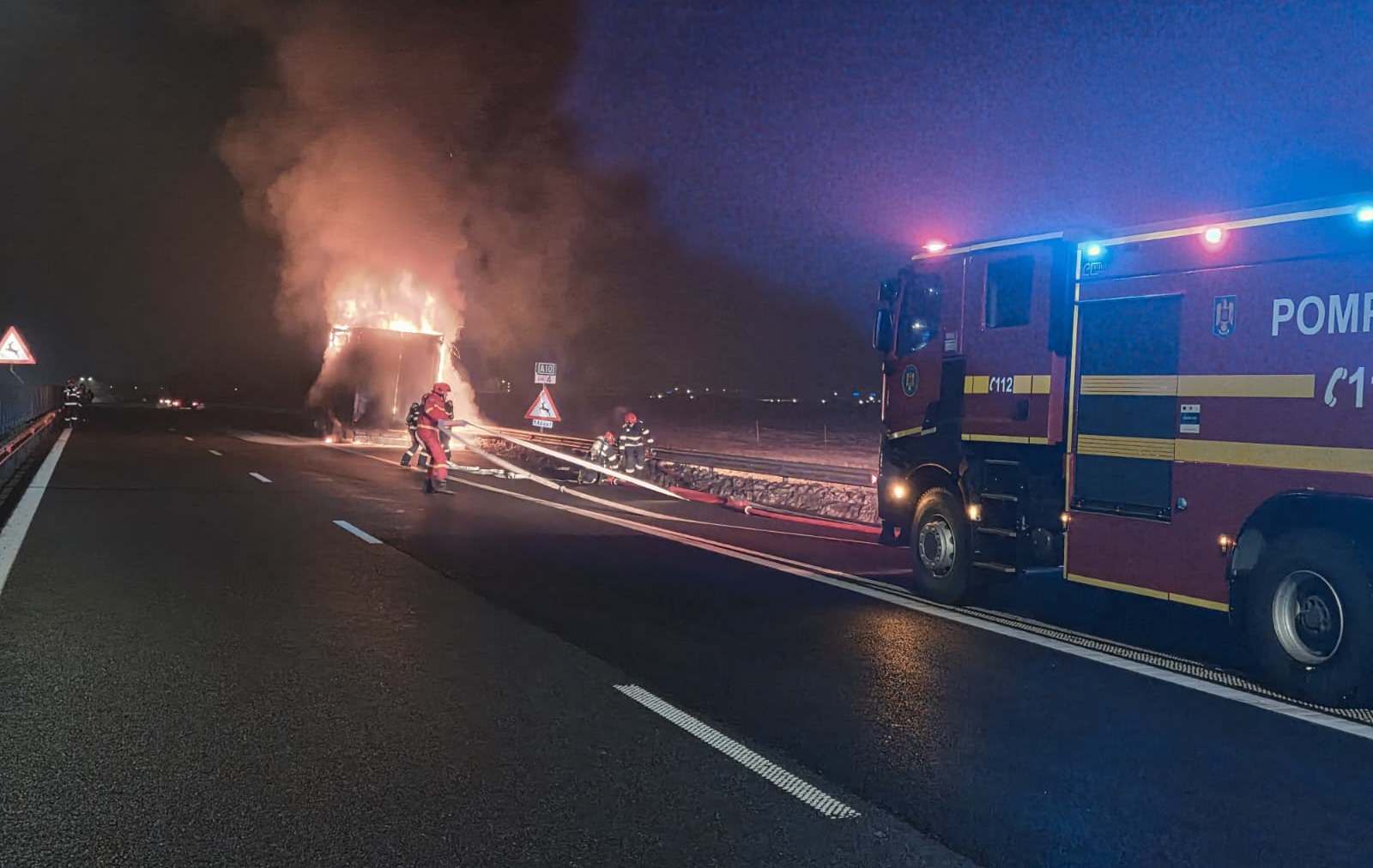 Incendiu pe autostrada A10: Remorca unui camion a luat foc